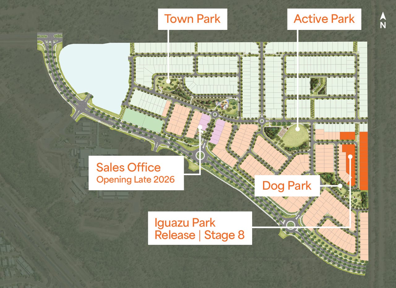 Discover a grounded way of living shaped by openness, lush greenery and natural calm in the newest release at The Parks. Introducing Iguazu Park Release, Stage 8, inspired by Argentina’s iconic Iguazú National Park and its rich rainforest landscapes and immersive natural atmosphere. This exclusive release features just 26 blocks tucked away in a peaceful street, just a short walk from the future active park. With a couple of lots positioned to enjoy park views over the dog park, this is a place to slow down, breathe deeply and feel connected to nature every day.